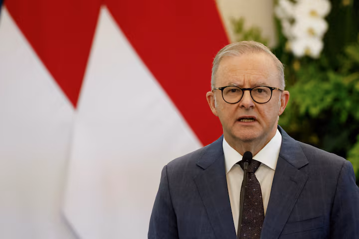 ১৫ মে, ২০২৫ তারিখে ইন্দোনেশিয়ার জাকার্তায় অবস্থিত মের্দেকা প্রাসাদে ইন্দোনেশিয়ার রাষ্ট্রপতি প্রাবোও সুবিয়ান্তোর (ছবিতে নয়) সাথে এক সংবাদ সম্মেলনে বক্তব্য রাখছেন অস্ট্রেলিয়ার প্রধানমন্ত্রী অ্যান্থনি আলবানিজ। রয়টার্স