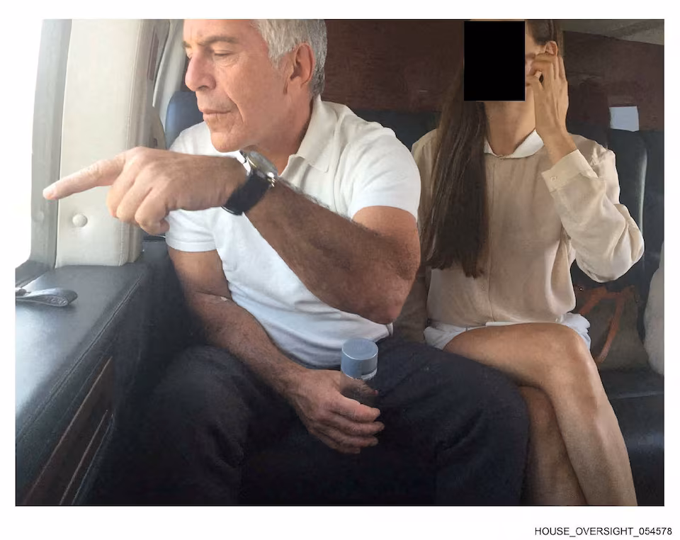 ১৮ ডিসেম্বর, ২০২৫ তারিখে মার্কিন যুক্তরাষ্ট্রের ওয়াশিংটন, ডিসিতে হাউস ওভারসাইট কমিটি ডেমোক্র্যাটস কর্তৃক প্রকাশিত এপস্টাইন এস্টেট থেকে নেওয়া এই ছবিতে প্রয়াত অর্থদাতা এবং দোষী সাব্যস্ত যৌন অপরাধী জেফ্রি এপস্টাইন একজন মহিলার সাথে দেখা যাচ্ছে, যার পরিচয় গোপন রাখা হয়েছে। হাউস ওভারসাইট কমিটি ডেমোক্র্যাটস/রয়টার্সের মাধ্যমে হ্যান্ডআউট