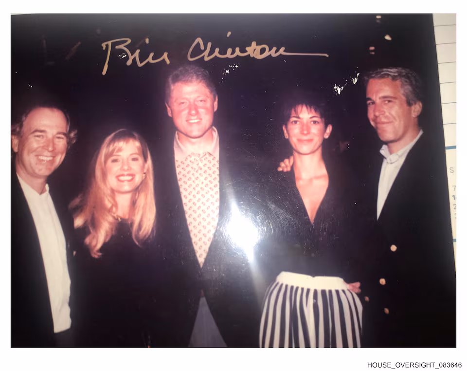 ১২ ডিসেম্বর, ২০২৫ তারিখে ওয়াশিংটন, ডিসিতে হাউস ওভারসাইট কমিটির ডেমোক্র্যাটদের দ্বারা এপস্টাইনের এস্টেট থেকে প্রকাশিত এই হ্যান্ডআউট ছবিতে প্রাক্তন মার্কিন রাষ্ট্রপতি বিল ক্লিনটন, ঘিসলাইন ম্যাক্সওয়েল এবং প্রয়াত অর্থদাতা এবং দোষী সাব্যস্ত যৌন অপরাধী জেফ্রি এপস্টাইন পোজ দিচ্ছেন। হাউস ওভারসাইট কমিটি ডেমোক্র্যাটস/রয়টার্সের মাধ্যমে হ্যান্ডআউট