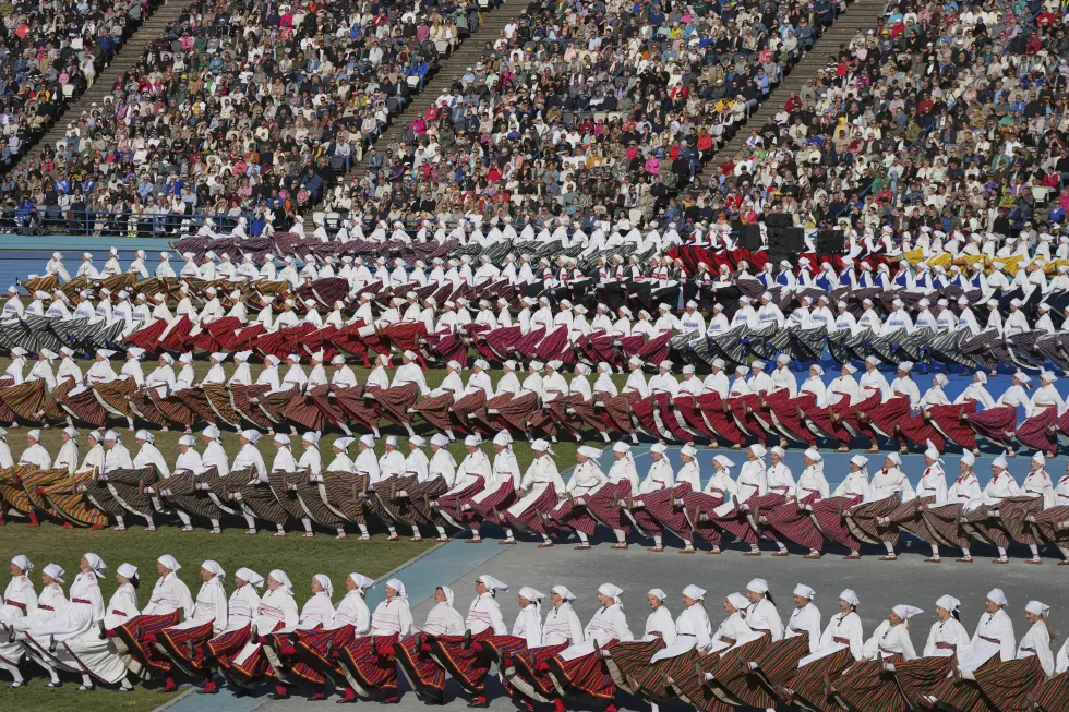 এস্তোনিয়ার রাজধানী তালিনের একটি বিশাল বহিরঙ্গন স্থান, গান উৎসব গ্রাউন্ড, শনিবার সন্ধ্যায় মুষলধারে বৃষ্টি সত্ত্বেও দর্শকে পরিপূর্ণ ছিল এবং রবিবার আরও বেশি লোক উপস্থিত ছিল। ঐতিহ্যবাহী গান ও নৃত্য উদযাপন, যা কয়েক দশক আগে সোভিয়েত নিয়ন্ত্রণের বিরুদ্ধে প্রতিরোধকে অনুপ্রাণিত করেছিল এবং পরে জাতিসংঘের সাংস্কৃতিক সংস্থা দ্বারা স্বীকৃত হয়েছিল, হাজার হাজার শিল্পী এবং দর্শকদের আকর্ষণ করেছিল, যাদের অনেকেই জাতীয় পোশাকে ছিলেন।