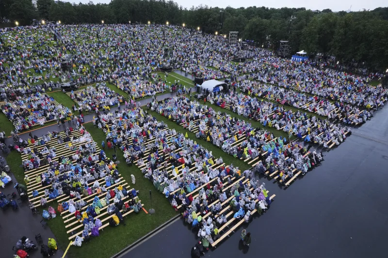রবিবার এস্তোনিয়া বৃষ্টির মধ্যে হাজার হাজার গায়কদলের কণ্ঠস্বর ভেসে ওঠে এবং বিষণ্ণ আবহাওয়ায় বিচলিত না হয়েও দর্শকদের বিশাল ভিড় করতালিতে ফেটে পড়ে।