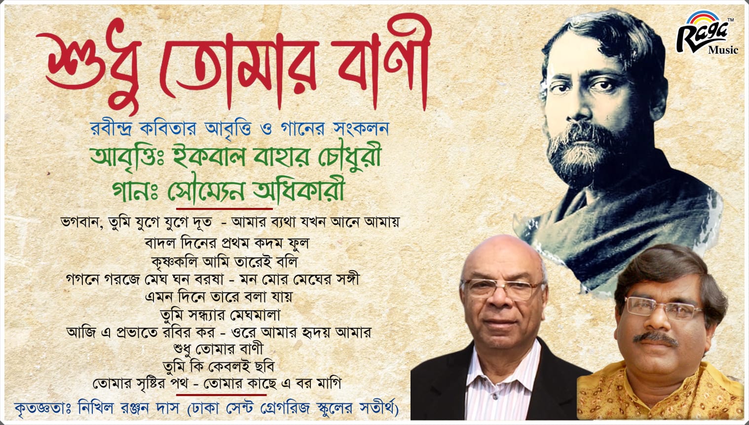 ১৯ নভেম্বর ২০২৫ ভয়েজ অফ আমেরিকার বাংলা বিভাগের অবসরপ্রাপ্ত প্রধান সংবাদ উপস্থাপক ও বিশিষ্ট কন্ঠ অভিনেতা ইকবাল বাহার চৌধুরীর ৮৫ তম জন্মদিন উপলক্ষে কলকাতার প্রতিষ্ঠিত রাগা মিউজিক রেকর্ড কোম্পানি থেকে প্রকাশিত হল রবীন্দ্রনাথের কবিতা আবৃত্তি ও গানের সংকলন ” শুধু তোমার বাণী“।