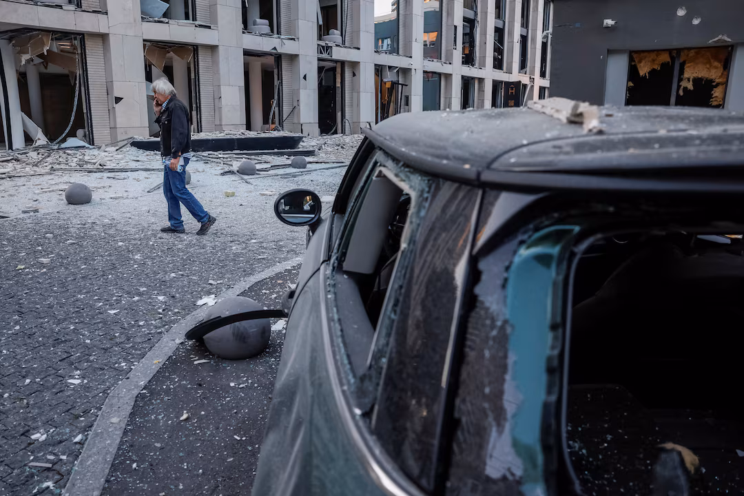4. ইউক্রেনের কিয়েভে, ২৮ আগস্ট, ২০২৫ তারিখে রাশিয়ার আক্রমণের মধ্যে, রাশিয়ার ক্ষেপণাস্ত্র এবং ড্রোন হামলায় ক্ষতিগ্রস্ত ভবনগুলির দিকে একজন ব্যক্তি হেঁটে যাচ্ছেন। রয়টার্স