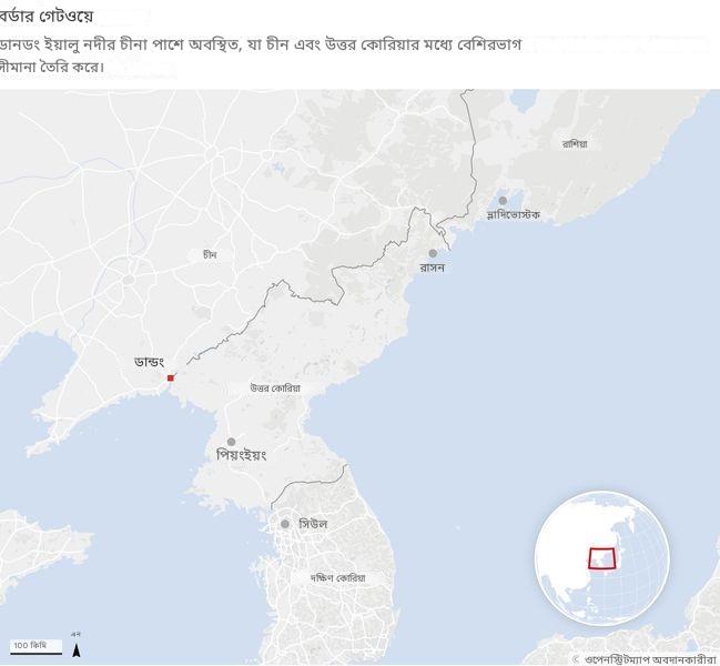 জানুয়ারীতে যখন রয়টার্স ডানডং পরিদর্শন করেছিল, তখন নদীর তীরবর্তী প্রমোনাডে বিক্রেতারা কিমের প্রতিকৃতি সম্বলিত ল্যাপেল পিন বিক্রি করছিল, যখন দালালরা পর্যটকদের নৌকা ভ্রমণের প্রস্তাব দিচ্ছিল। চীনা ট্রাকের একটি অবিরাম স্রোত কাপড়, সয়াবিন তেল, টায়ার এবং হিমায়িত হাঁসের মাংসের মতো পণ্য বহন করে পুরাতন চীন-কোরিয়ান মৈত্রী সেতু পেরিয়ে উত্তর কোরিয়ার রক্ষীদের দিকে যাচ্ছিল।