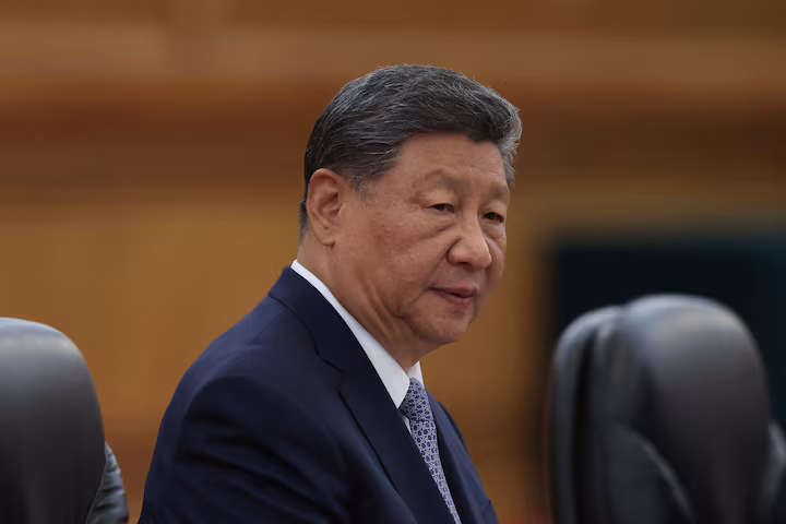 চীনের রাষ্ট্রপতি শি জিনপিং ৪ সেপ্টেম্বর, ২০২৫ তারিখে চীনের বেইজিংয়ে দ্য গ্রেট হল অফ দ্য পিপলে এক দ্বিপাক্ষিক বৈঠকে যোগ দিচ্ছেন। লিনতাও ঝাং/পুল, রয়টার্সের মাধ্যমে