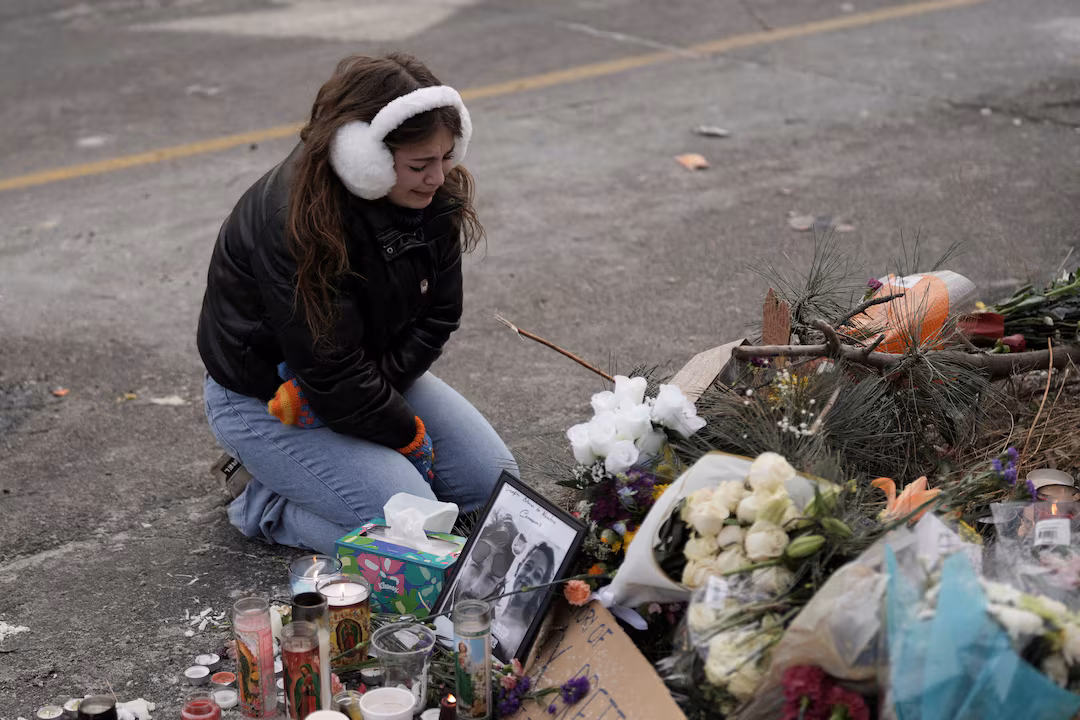 ২৫ জানুয়ারী, ২০২৬, মার্কিন যুক্তরাষ্ট্রের মিনেসোটার মিনিয়াপলিসে, যেখানে অ্যালেক্স প্রেত্তি নামে একজন ব্যক্তিকে আটক করার চেষ্টা করার সময় ফেডারেল ইমিগ্রেশন এজেন্টরা গুলি করে হত্যা করে, সেখানে একটি অস্থায়ী স্মৃতিসৌধে একজন ব্যক্তি প্রতিক্রিয়া জানাচ্ছেন। রয়টার্স