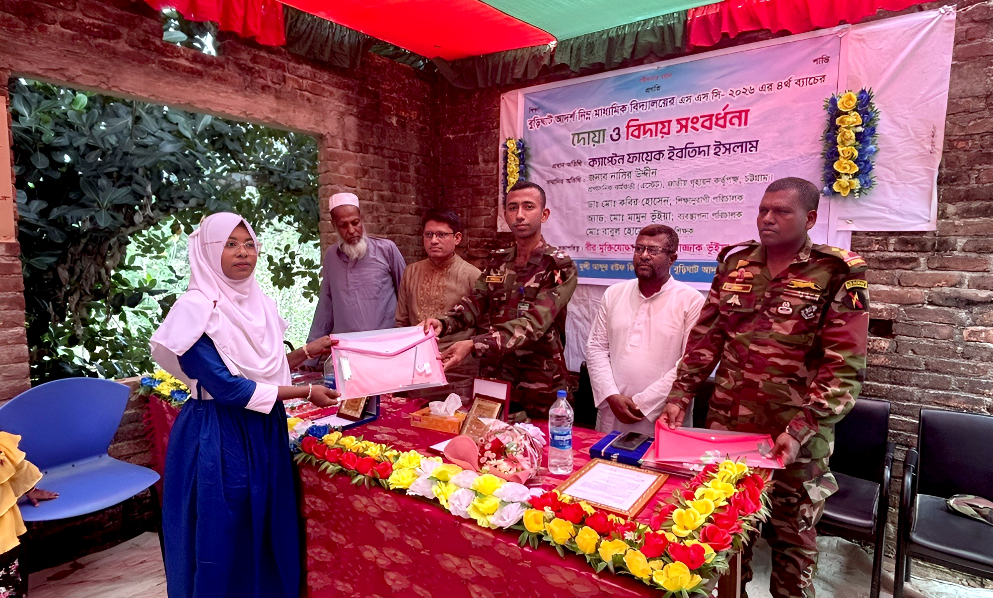 সম্প্রীতি ও উন্নয়ন প্রকল্পের আওতায় নানিয়ারচর সেনা জোন কর্তৃক এপ্রিল ২০২৬ (শনিবার) রাঙ্গামাটি জেলার নানিয়ারচর  উপজেলাধীন বুড়িঘাট ইউনিয়নের আওতাধীন বুড়িঘাট আদর্শ নিম্ন মাধ্যমিক বিদ্যালয়ের এস.এস.সি পরীক্ষার্থীদের বিদায়ী সংবর্ধনা প্রদান ও শিক্ষা সামগ্রী বিতরণ করা হয়েছে।