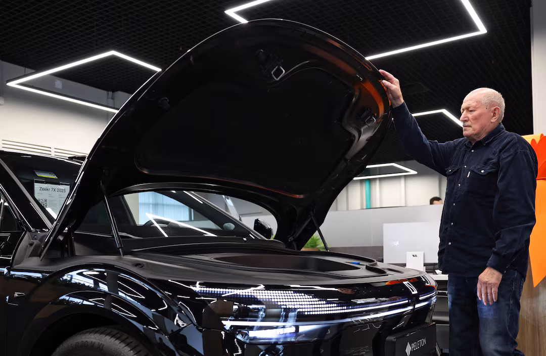 মস্কোর পেলেটন গাড়ি ডিলারশিপের শোরুম পরিদর্শনকারী পেনশনভোগী ভ্যালেরি বোন্ডারেঙ্কো বলেন, চীনা গাড়ি “লম্ফনে” এসেছে কিন্তু কিছু রাশিয়ান সন্দেহবাদী রয়ে গেছে।