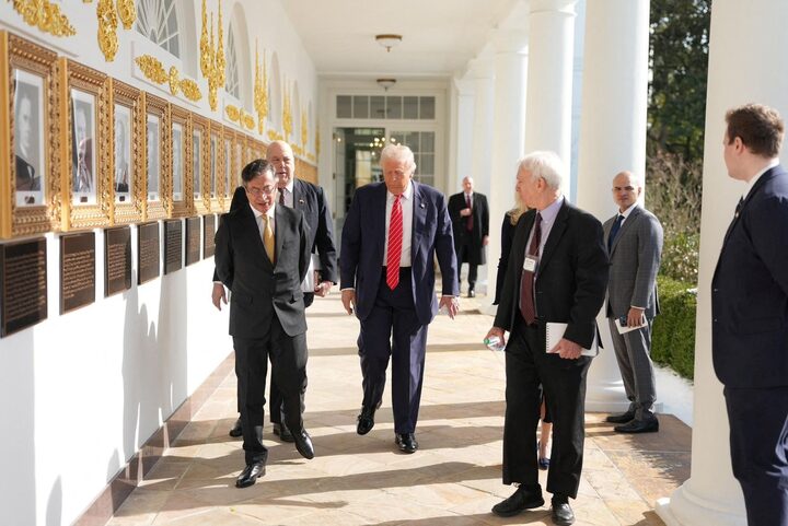 মার্কিন প্রেসিডেন্ট ডোনাল্ড ট্রাম্প এবং তার কলম্বিয়ান প্রতিপক্ষ গুস্তাভো পেট্রো ৩ ফেব্রুয়ারী, ২০২৬ তারিখে ওয়াশিংটন, ডিসি, মার্কিন যুক্তরাষ্ট্রের হোয়াইট হাউসে একসাথে হাঁটছেন। কলম্বিয়ার প্রেসিডেন্সি/রয়টার্সের মাধ্যমে হ্যান্ডআউট
