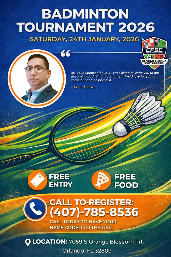 ফ্লোরিডায় ২৪ জানুয়ারি ব্যাডমিন্টন প্রতিযোগিতা আয়োজন