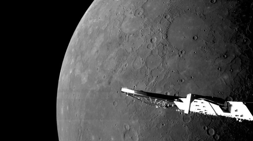 ইউরোপীয় এবং জাপানি রোবোটিক এক্সপ্লোরার গ্রহের উত্তর মেরুতে সরাসরি যাওয়ার আগে বুধের রাতের দিক থেকে 183 মাইল (295 কিলোমিটার) উপরে উঠেছিল। ইউরোপীয় স্পেস এজেন্সি বৃহস্পতিবার অত্যাশ্চর্য স্ন্যাপশট প্রকাশ করেছে, আমাদের সৌরজগতের সবচেয়ে ছোট, অভ্যন্তরীণ গ্রহের শীর্ষে স্থায়ীভাবে ছায়াযুক্ত গর্তগুলি দেখায়।