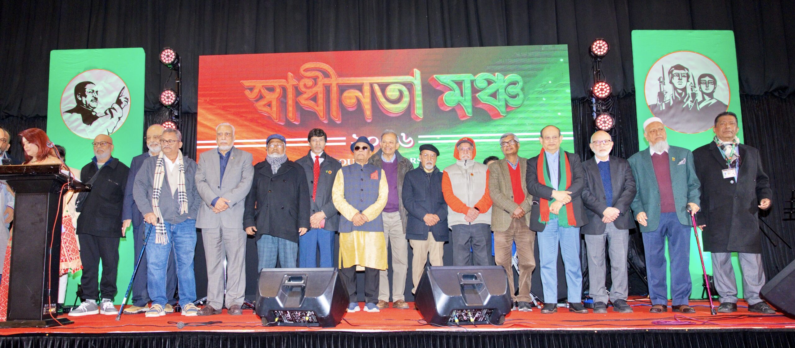 তাঁর বক্তব্যে তিনি আরো বলেন, প্রবাসে থেকেও বাংলাদেশের স্বাধীনতার ইতিহাস ও মুক্তিযুদ্ধের চেতনাকে ধারণ করা এবং নতুন প্রজন্মের কাছে তা পৌঁছে দেওয়া আমাদের সবার দায়িত্ব। তিনি গভীর শ্রদ্ধার সঙ্গে স্মরণ করেন একাত্তরের বীর শহীদ ও মুক্তিযোদ্ধাদের, যাঁদের আত্মত্যাগের বিনিময়ে পৃথিবীর মানচিত্রে জন্ম নিয়েছে স্বাধীন বাংলাদেশ। হলভর্তি দর্শকের উপস্থিতিতে অনুষ্ঠানটি যেন পরিণত হয় এক অনন্য মিলনমেলায়। এতে রাজনীতিক, সাংবাদিক, সাহিত্যিক, সাংস্কৃতিক ব্যক্তিত্ব এবং প্রবাসী বাংলাদেশি কমিউনিটির সুপরিচিত ব্যক্তিসহ সর্বস্তরের মানুষ উপস্থিত ছিলেন। সবার অংশগ্রহণে প্রবাসের মাটিতে সৃষ্টি হয় এক হৃদয়ছোঁয়া আবহ, যেখানে স্বাধীনতার গান আর স্মৃতির আবেগ মিলেমিশে হয়ে ওঠে এক অবিস্মরণীয় মুহূর্ত।