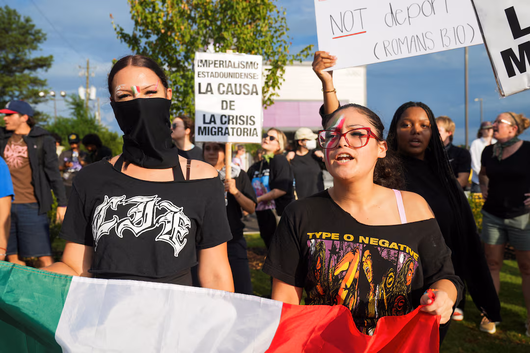 বিক্ষোভকারীরা মেক্সিকো এবং অন্যান্য দেশের পতাকা উড়িয়ে একের পর এক তীব্র অভিযান চালিয়ে আটক অভিবাসীদের প্রতি সংহতি প্রকাশ করেছেন।