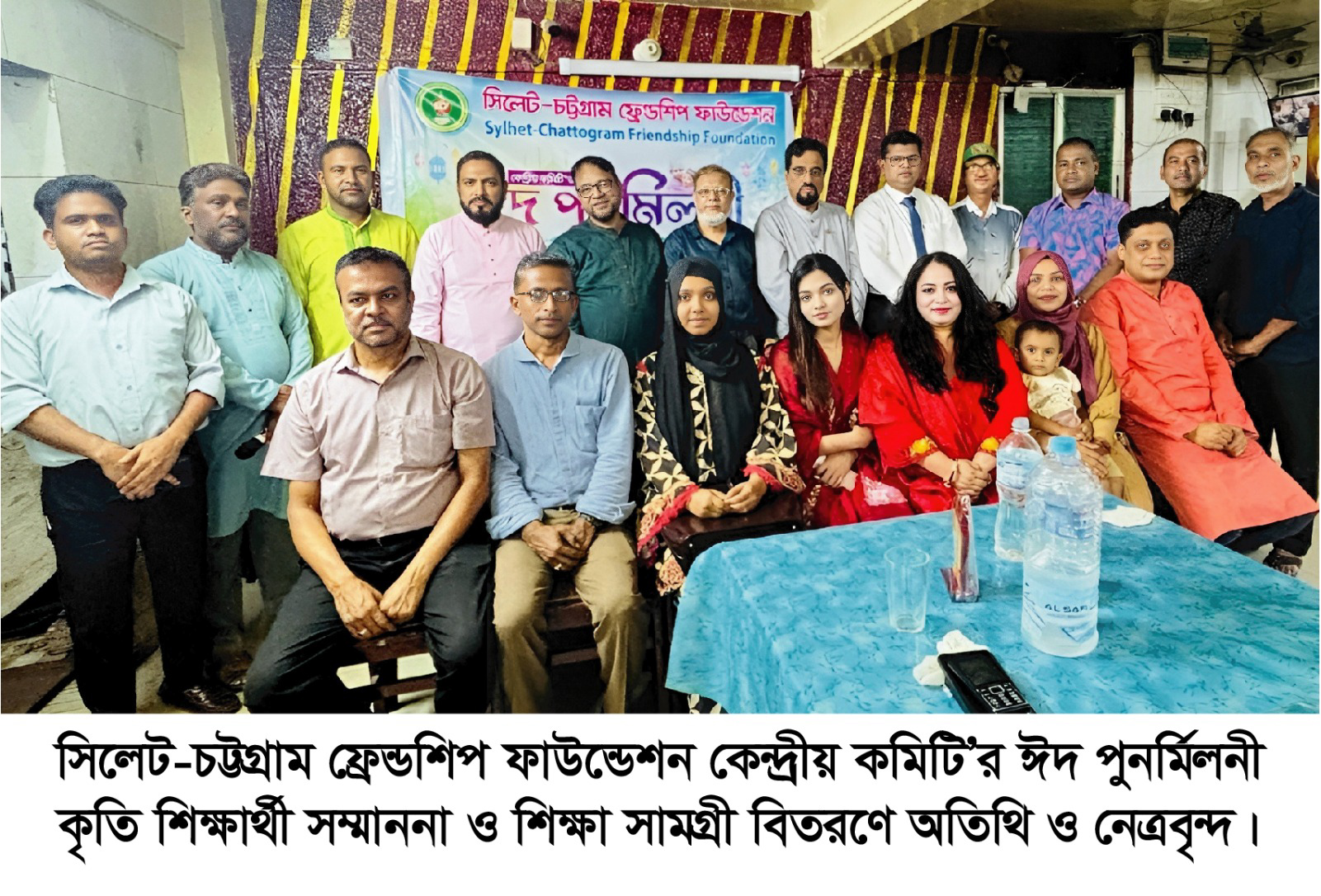 স্বেচ্ছাসেবী, সামাজিক ও মানবিক সংগঠন সিলেট-চট্টগ্রাম ফ্রেন্ডশিপ ফাউন্ডেশন কেন্দ্রীয় কমিটির উদ্যোগে ৫ এপ্রিল ২০২৬, রবিবার, সন্ধ্যায় ৭টায় নগরীর টাইগারপাসস্থ মোড়ের একটি রেস্টুরেন্টে ঈদ পুনর্মিলনী, কৃতি শিক্ষার্থী সংবর্ধনা ও এতিম শিক্ষার্থীদের মাঝে উপহার বিতরণ অনুষ্ঠিত হয়।