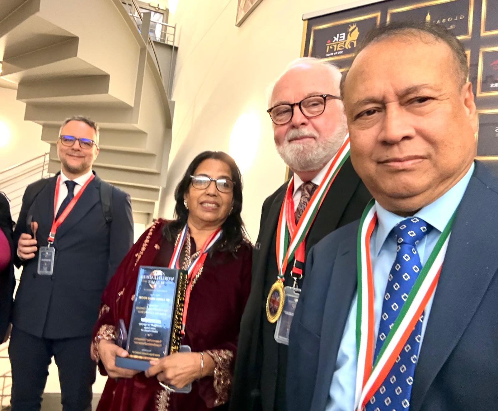 At this conference, Peter Justin (USA), Daljit Bakshi (Australia), Professor Adina Tulbure (UK), Dr. Alan Larosa (USA), Carla Ruzziero (Italy), Professor Dr. Billy Tang Chi Sen (Malaysia), Meghalatha Nagaraj (India), Prabath Ranawna (UAE), Alessio Filippelli (Italy) and Golam Kibria (Singapore), among others, received awards in recognition of their contributions to their respective professions and humanity.