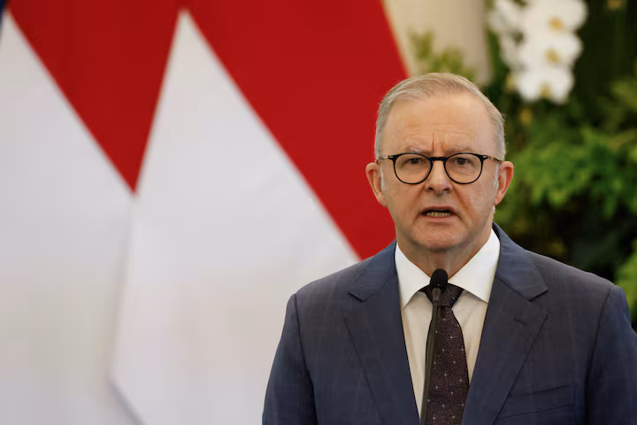 ১৫ মে, ২০২৫ তারিখে ইন্দোনেশিয়ার জাকার্তায় অবস্থিত মের্দেকা প্রাসাদে ইন্দোনেশিয়ার রাষ্ট্রপতি প্রাবোও সুবিয়ান্তোর (ছবিতে নয়) সাথে এক সংবাদ সম্মেলনে বক্তব্য রাখছেন অস্ট্রেলিয়ার প্রধানমন্ত্রী অ্যান্থনি আলবানিজ। রয়টার্স